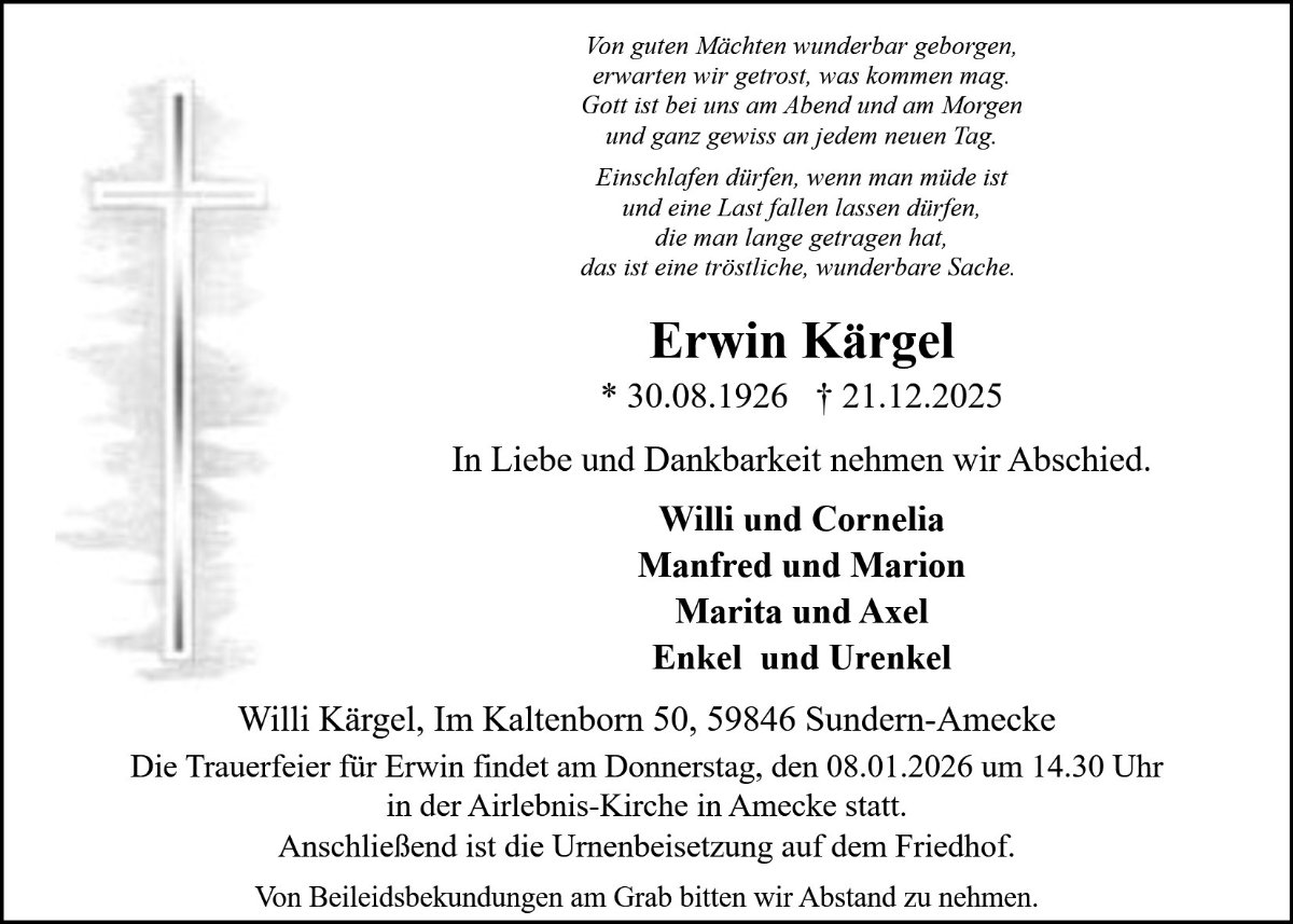 Erwin Kärgelgestorben am 21. Dezember 2025