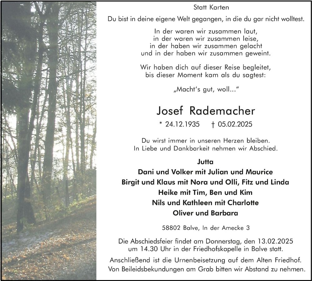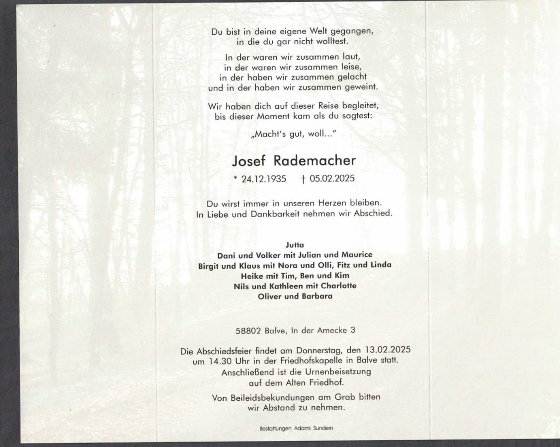 wir wünschen Ihnen für die kommende Zeit viel Kraft und dass es Ihnen gelingt, dankbar auf die positiven Erinnerungen zurückzublicken. Diese Gedenkseite möge Ihnen dabei helfen, Ihre Trauer zu teilen und das Andenken gemeinsam wachzuhalten.