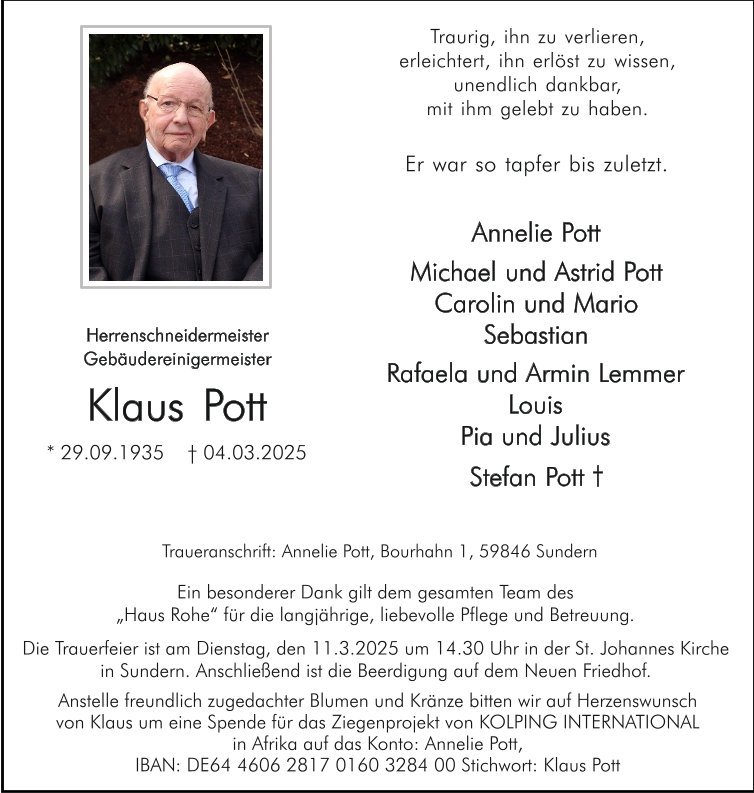 in diesen Tagen fühlen wir mit Ihnen und wünschen Ihnen von Herzen, dass Sie aus den glücklichen Erinnerungen Kraft schöpfen, um positiv in die Zukunft zu gehen. Diese Gedenkseite möge Ihnen dabei helfen, Ihre Trauer zu teilen und das Andenken gemeinsam wachzuhalten.