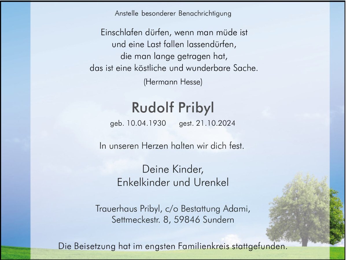 wir wünschen Ihnen für die kommende Zeit viel Kraft und dass es Ihnen gelingt, dankbar auf die positiven Erinnerungen zurückzublicken. Diese Gedenkseite möge Ihnen dabei helfen, Ihre Trauer zu teilen und das Andenken gemeinsam wachzuhalten.