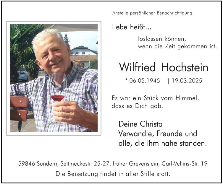 wir wünschen Ihnen von Herzen viel Kraft, dass Sie Menschen um sich haben, die Ihnen in dieser schweren Zeit beistehen und Halt geben. Zusätzlich können Sie auf dieser Gedenkseite Erinnerungen teilen und so das Andenken gemeinsam wachhalten.